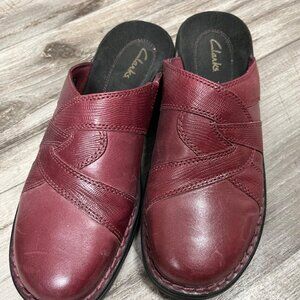 Clark’s Genuine Leather “Bendables” Low Heel Clogs Burgundy Women’s Size 8