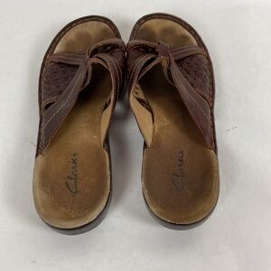 Excellent Condition Clarks Genuine Leather Woven Criss Cross Slip on Open Toe Sandal
