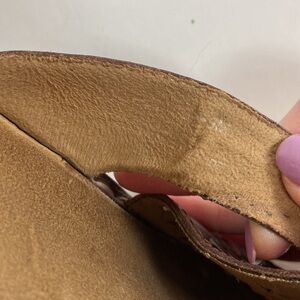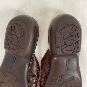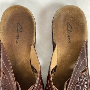 Excellent Condition Clarks Genuine Leather Woven Criss Cross Slip on Open Toe Sandal