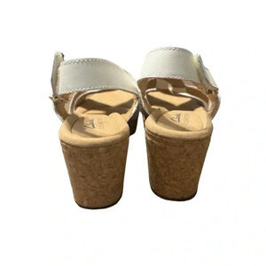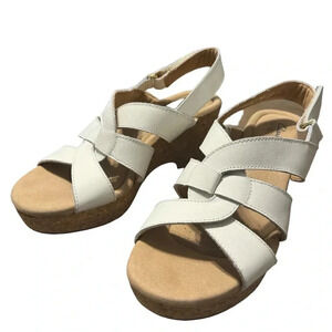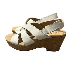 🤍 Clarks Giselle Beach Wedge Sandals Sz 9 ☀️ White Cork Platform Comfort Shoe 🤍