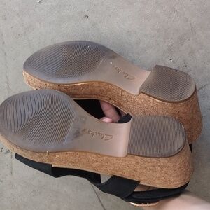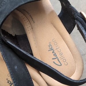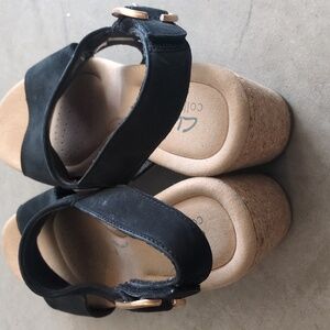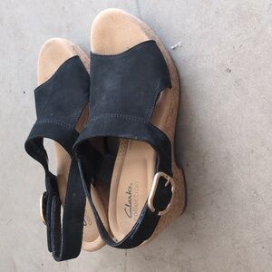 Clarks Giselle Sea Women's Black Cork Suede Wedge Heel Sandals Size 9.5