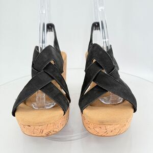 Clarks Giselle Beach Strappy Cork Wedge Heel Platform Sandals Black Size 10M