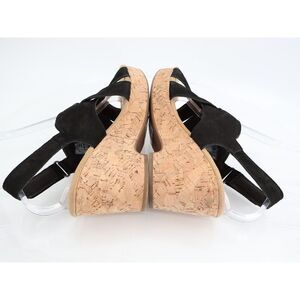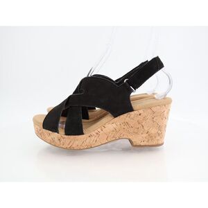 Clarks Giselle Flora Strappy Cork Wedge Heel Platform Sandals Black Size 10M