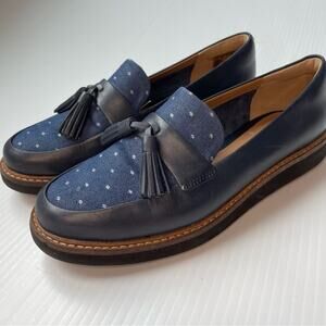 Clarks Glick Castine loafer navy leather with tassel size 6.5 patterned fabric