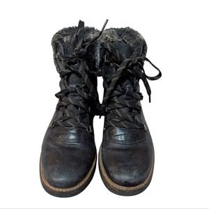 Women’s Clark’s Glick Clarmont Black Leather Ankle Boots Faux Fur 8 M
