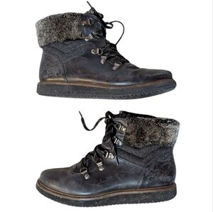 Clarks Glick Clarmont Black Leather Ankle Boots Faux Fur 8 M