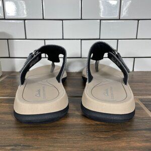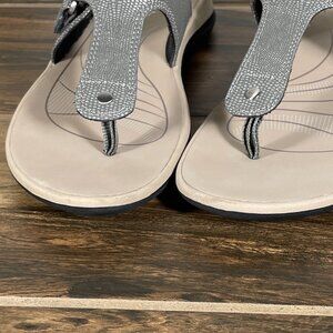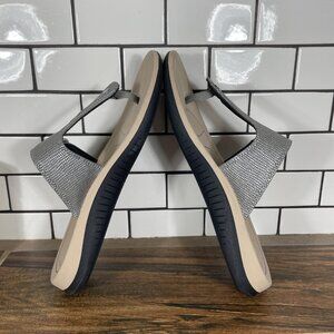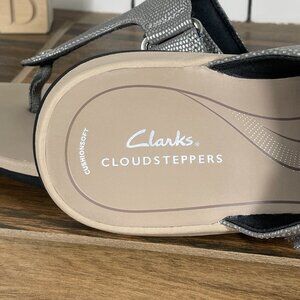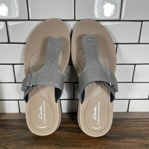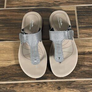 Clarks Glide Walk Womens Size 8 Shoes Pewter T Strap Cloudsteppers Thong Sandals