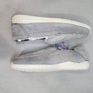 Clarks Gorwin Step Grey Suede Leather Washable Comfort Loafers Men's Size 10.5