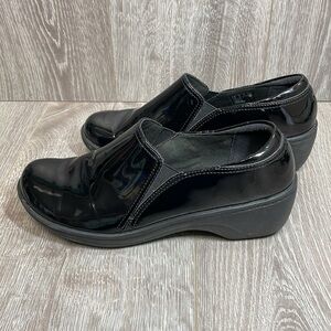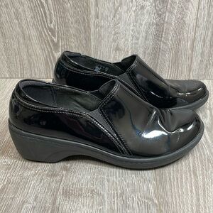 Clarks Grasp Chime Clogs Black Patent Slip Resistant Work Shoes 8M