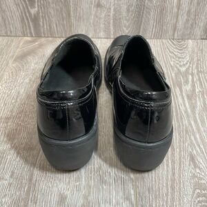 Clarks Grasp Chime Clogs Black Patent Slip Resistant Work Shoes in size 8M. Excellent preowned condition, worn one time. . Sensible 2” heel, slip on, round toe, cushioned insole, goring at the sides, slip resistant rubber sole. Please see photos for approximate measurements and details. Item may show difference in color based upon photography and perception. Photos are part of the description, as everyone’s level of condition may vary. From smoke free and pet free home. All packages are shipped the same or next business day.