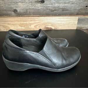 These women’s black slip on Clark shoes are a size 8M and are in good preowned condition. Please note scratches on leather near toes as shown in pics. Please see photos as they are part of the description and show the wear and condition of the shoes. Questions? Leave a comment below!