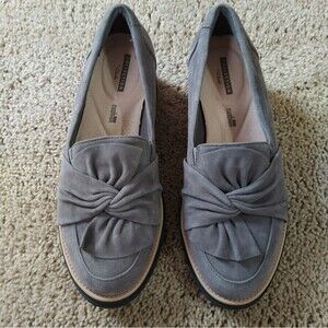 Stylish gray loafers with a bow detail. Classic design, comfortable and versatile. Perfect for casual wear.