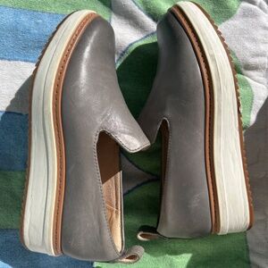 Stylish gray loafers by Clarks. Comfortable and versatile design.