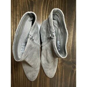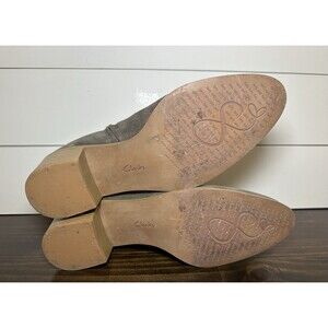 Clarks Gray Suede Ankle Boots Side Zipper Block Heel Booties Women's 9.5