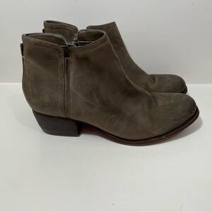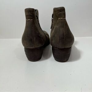 Gently worn women's size 8.5 clarks grey leather heeled ankle booties. Please review all photos for any signs of wear-pictured as is. Disclaimer: Any items with any wear/staining has not been treated, and unsure of ability to remove/treat condition. Comes from a smoke free home, bundle with other items to save & minimize shipping cost.
