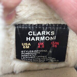 Clarks Harmoni Suede Slippers Womens 6 Brown Leather Faux Fur