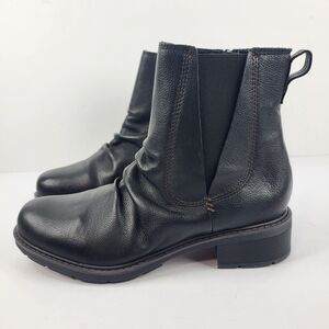 Clarks Hearth Rose Black Leather Ankle Boot Comfort Slouchy Chelsea 9.5M