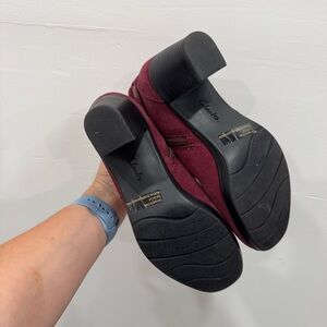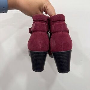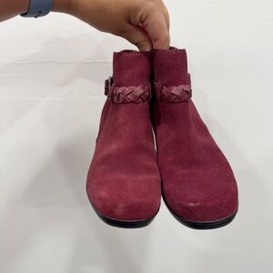 Clarks Heeled Bootie Suede Leather Burgundy Braided Detail Size 6 Classic Comfy