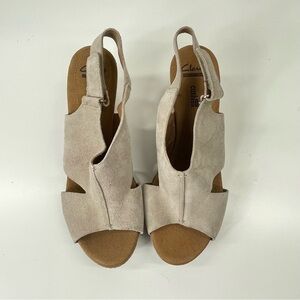 Clarks Helio Float Wedge Sandal in Tan Suede Size 10 Wide