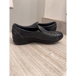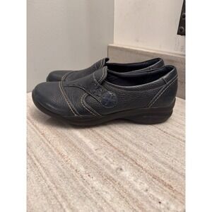 Clark's In Motion Women's Sz 10 Navy Blue Leather Slip On Shoes Loafers