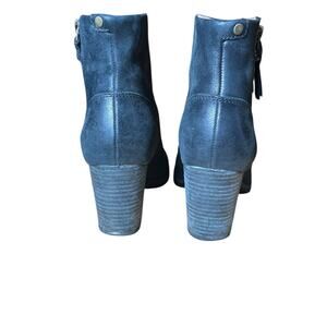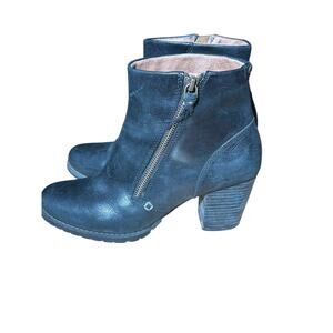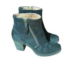 Sleek and timeless black leather ankle boots by Clarks Indigo. Features side zippers with tassel pulls, cushioned insoles, and sturdy stacked heels for all-day comfort. Perfect with jeans, dresses, or skirts — your new go-to fall and winter boot. Wear on soles and on the heal but overall good condition.