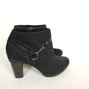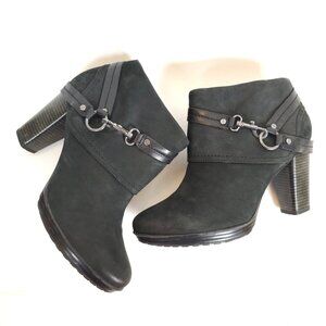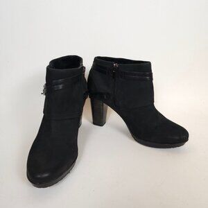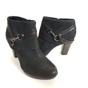 SEO Keywords: Clarks Indigo Lida Piper Boots, Black Leather Ankle Booties, Women’s Suede Heeled Boots, Zip Buckle Block Heel Booties Size 10M