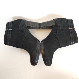 Clarks Indigo Lida Piper Black Leather Suede Ankle Boots Zip Buckle Heel Size 10M