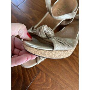 Clarks Indigo Womens Gold Metallic Knot Cork Open Toe Wedge Sandals Sz10 M