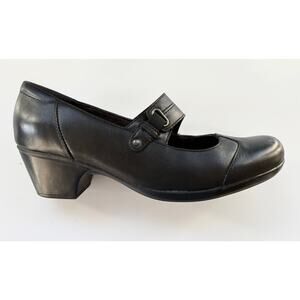 Clarks Ingalls Siene Womens 11W Mary Jane Pumps Black Leather Comfort Block Heel