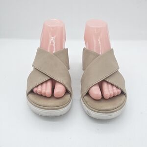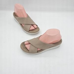 Clarks Jillian Gem Wedge Sandals Beige Leather Size 8 US