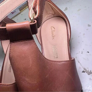 Clarks Kaylin 60 Glad Womens Peep Toe Heels Tan Leather US Size 7.5 M