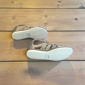 Key Features:- Style: Kele Lotus- Multi-strap perforated upper with heel zipper and hook-and-loop closure- Metallic - gold and silver/pewter- Padded insole with Cushion Soft technology for all-day comfort- Textured outsole for added traction- Approximately 1-inch heel for subtle elevation- True to size fit- Leather upper; man-made balance- Imported