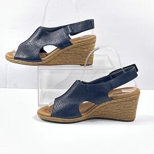 Clarks Lafley Rosen Sandals Womens 8.5 Navy Wedge Slingback Espadrille Cushion