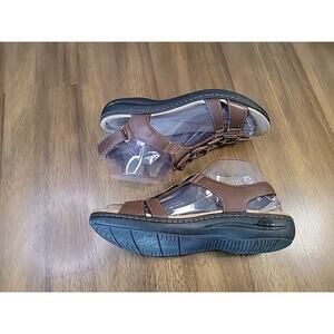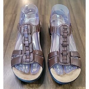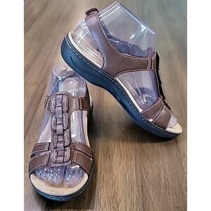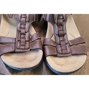 Clarks Laurieann Kay Brown Leather T-Strap Sandals Women’s 5.5M GUC