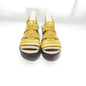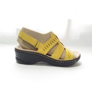 Clarks Leather Cut-Out Sandals Lexi Qwin 8 Wide Yellow NIB