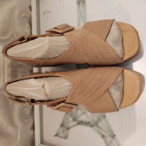 Clarks Leather "Nerisa West" Sand Nubuck Sandals. NIB. Size 5