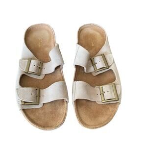 Clarks Leather Suede Double Buckle Slide Tan Sandals size 10 no box in like new condition. Only tried on!