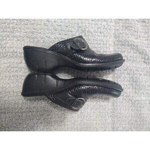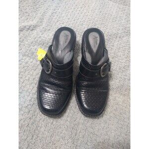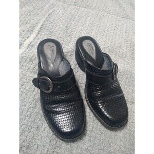 Clarks Leather Weaved Clog Shoes Black Size 9 Classic Comfy