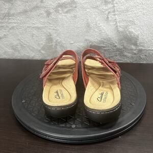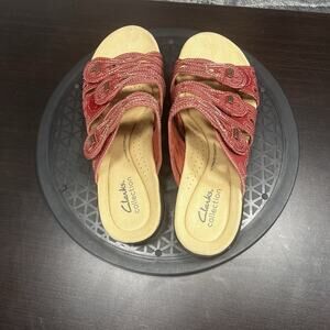 Clarks Leisa Faye Sandals Womens 7M Red Leather Slip On Adjustable Slide Shoes