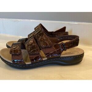 Clarks Leisa Melinda Brown Croc Embossed 3 Strap Women's Sandals size 8.5 Like New!! The Clarks Leisa Melinda Slingback Sandal complements a variety of casual or dressy ensembles for your warm-weather wardrobe. This slingback features an OrthoLite footbed with Cushion Soft padding that ensures excellent cushioning and moisture-wicking comfort, and an EVA outsole that delivers flexibility and shock-absorbing comfort. Part of the Clarks Collection