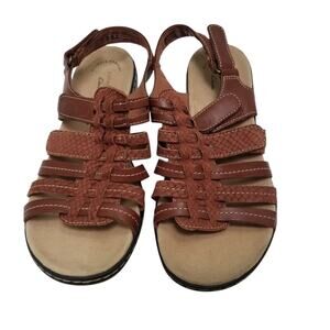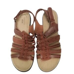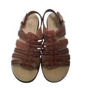 Clarks Leisa Rhea Sandals Womens 8 M Brown Strappy Ankle Strap Comfort Casual