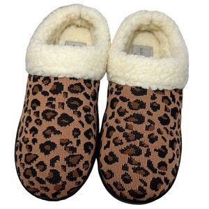 Clarks Lenox Dream Cloudsteppers Knit Slippers Leopard Dark Tan Women's 6M NWB