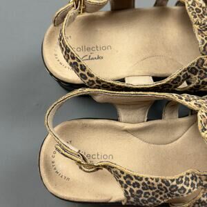 Clarks Leopard Print Slingback Sandals 6 XW Comfort