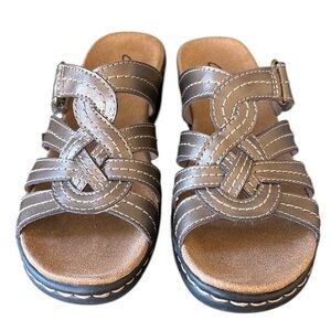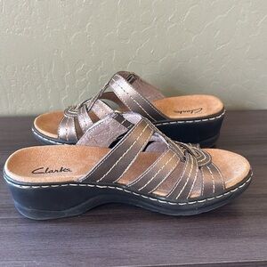 Clarks Lexi Dill Bronze Metallic Leather Slip On Sandal Size 7. Excellent condition.