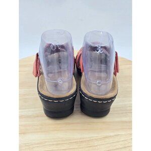Clarks Lexi Leather Sandals Womens sz 6Morange- salmon color. IN good pre-owned condition. Flaws- some wear on bottom back soles- some staining on footbeds- some discoloration on straps see pictures above.