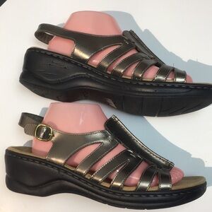 Clarks Lexi Marigold Metallic Leather Bendables Open Toe Slingback Sandals 11