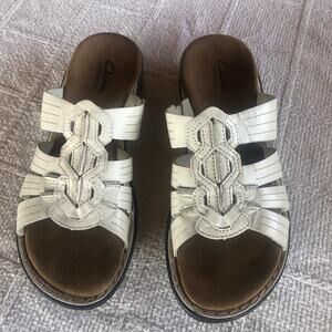 Clarks Lexi Slide Slip On Leather Sandals Women’s Size 7.5 M Cream White Spring
