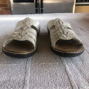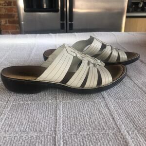 Clarks Lexi Slide Slip On Leather Sandals Women’s 7.5 M Cream Resort Boho