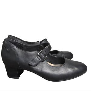 Clarks Linnae Walk Black leather block heel comfort strappy Mary Janes 9