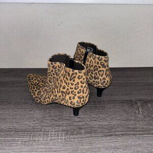 Clarks Linvale Judith Suede Leopard Pointed Toe Heeled Ankle Booties Size 7.5